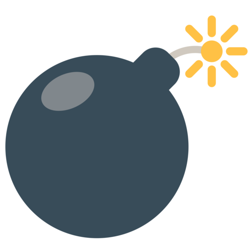 La bomba emoji es una bomba de estilo de dibujos animados, representada por una bola negra con un detonador en llamas. Usado comúnmente para varias bombas o explosiones figurativas, por ejemplo, jerga de bombas, "jonrón" de béisbol o softbol; "excelente" o "atractivo". A veces se aplica en contextos de guerra, armas o violencia. ¡Está a punto de irse! La bomba emoji, 💣, se usa para enfatizar que algo es impresionante o asombroso (es decir, explosivo) o la bomba de jerga, especialmente para eventos como fiestas o verse bien. También se utiliza para noticias que pueden ser impactantes o decisivas (es decir, una bomba o un boom, existe). De vez en cuando se utiliza para explosivos reales. El emoji de bomba se puede usar como la jerga que dice que es la bomba, o "excelente" o "asombroso". ¿Ese festival de música al que te invitó tu amigo? Será. ¿Te sientes como un millón de dólares? Estás buscando 💣. El término "bomba" no se aplica generalmente a los artefactos explosivos utilizados con fines civiles, como la construcción o la minería, aunque las personas que usan estos dispositivos a veces pueden referirse a ellos como "bombas". El uso militar del término "bomba", o más específicamente acción de bomba aérea, generalmente se refiere a armas de succión aérea y explosivas sin detonar, más comúnmente utilizadas por las fuerzas aéreas y la aviación naval. Otras armas explosivas militares no clasificadas como "bombas" incluyen proyectiles, cargas de profundidad (utilizadas en el agua) o minas terrestres. En la guerra no convencional, otros nombres pueden referirse a una variedad de armas ofensivas. Por ejemplo, durante